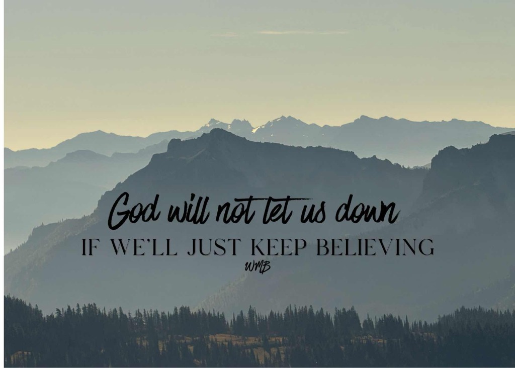 “…God will not let us down if we’ll just keep believing. And let us take heart. Let’s be strong in faith. We must have these trials and testings and times to prove our faith. Every son that cometh to God must first be tried, chastened of God. So you come and pray.” WMB